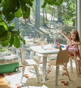 Művészi alkotások és számtalan teaparti - mindez egy körülbelül 2-6 éves kisgyerekek asztalán zajlik majd, amelyhez tökéletes az Oeuf NYC Nyuszi vagy Medve szék. Az Oeuf NYC gyerekszoba bútorok tartós és egyben környezetbarát anyagokból készülnek, könnyen kezelhető laminátumból készült deszkával.