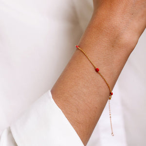 Gyönyörű ékszer vonzó részletekkel, apró piros szívekkel. A Little Big Love kollekcióból. Állítható méret - három hosszúságban rögzíthető. Nőies, önmagában is lenyűgöző, vagy még személyesebb a Design Letters betűs ékszereivel kombinálva.