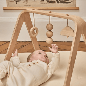 Eredeti fa játék híd játékokkal. A lógó játékok mozgásra motiválják a gyermeket. Helyezze a földre, vagy például a Charlie Crane Tami gyermek játszó alátétre, amelyet szintén megtalál kínálatunkban.