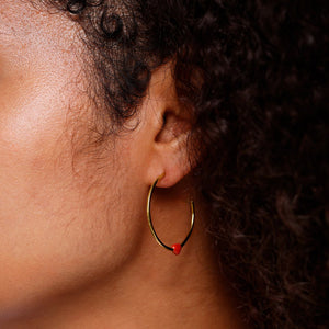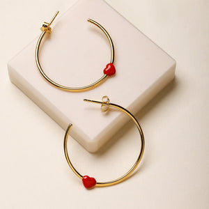 Karika fülbevalók a Little Big Love kollekcióból, apró piros szívecskével. Minimalista, mégis lenyűgöző ékszer.