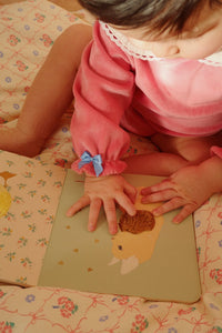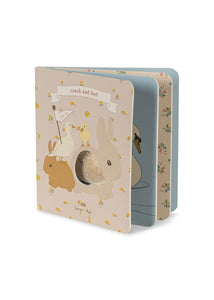 Érintős könyv - "Touch and Feel Book” 6 hónapos kortól. Erős kartonból készült, különböző anyagokból, játékelemekkel, amelyek serkentik a baba érzékeit, gyönyörű illusztrációkkal. Tanúsított papírból.