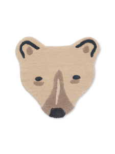 Puha, játékos, egyedi - akár szőnyegként a padlóra, akár a falra helyezi, egyedi kiegészítője lesz a gyerekszobának. A kézzel szőtt új-zélandi gyapjúszőnyeg barátságos jegesmedvefej alakjában különböző szőrmagasságú, így érdekes tapintási elem lehet a kisgyermekek számára.