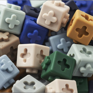 A kellemes, 100%-os szilikonból készült színes kockakészlet több órányi kreatív játékot garantál, akár az asztalon, akár a padlón.
