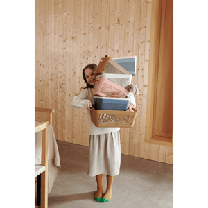 A kisebb méretű könnyű tárolódobozok, amelyek a gyerekszobák kedvelt funkcionális és egyben stílusos kiegészítői. Játékokra, művészeti kellékekre, apróságokra stb. Nemcsak a gyerekszobában, hanem az egész háztartásban is használhatja, ahol a család kisebb és nagyobb tagjai számára is hasznosak lesznek. Ha éppen nem használja a dobozokat, akkor egymásba helyezheti őket.