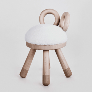 A bárány szék a szívből készült. Játékos műalkotás és alkalmazott gyermekdizájn alkotás egyben. A szék finom anyagokból készül, egyértelműen utalva a bárányra. A szék támlája kis agancsból áll, az ülést műszőrme borítja.