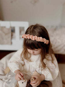 Hajpánt az apró szépségeknek, ráncolt pamuttal díszítve.