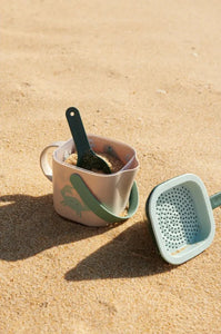5 az 1-ben homokozó és vízi játékok. Egy kanna, egy vödör, egy lapát, egy szűrő és egy tölcsér. Helytakarékosság érdekében mindent a kannába lehet tenni. A kanna levehető fogantyúval rendelkezik, amely a vödörre is rögzíthető.