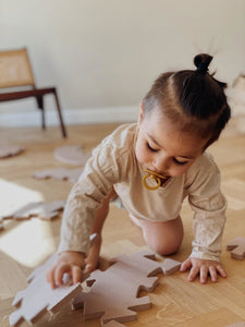 A That's Mine dán márka hab alátétek "puzzle" -ként rakhatók össze. A neutrális színeknek köszönhetően bármilyen belső térbe jól illenek. Hasznos a fekvő csecsemők, valamint a nagyobb, mászó gyermekeknek is, akik számára az alátét kényelmes teret teremt a játékhoz.