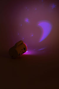 Nagyméretű lámpa gyerekeknek, mellyel a fény színét változtathatja. Csillag és hold motívumokkal ellátott levehető tetővel rendelkezik, aminek köszönhetően ezeket a varázslatos formákat kivetíthetik a falra. A zseblámpa fogantyúján két gomb található. Az egyikkel be-/kikapcsolhatja, a másik a lámpa színének megváltoztatásához használható. Remek játék és praktikus eszköz. USB töltéssel.