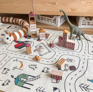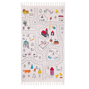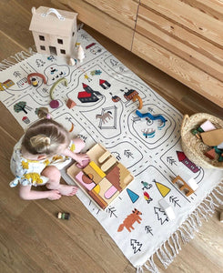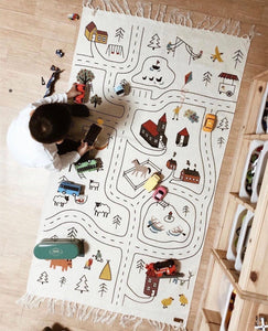 Egy szőnyeg a kis felfedezőknek, ami a kalandok helyéül szolgál. Az országutak mintha autókra lennének tervezve. Az út során találkozik erdővel, tóval és állatokkal. S ha a kis kalandvágyó civilizációra vágyik, a szőnyegen talál házakat, fagyis kocsit és játszóteret is. A fantáziának semmi sem szab határt!