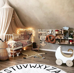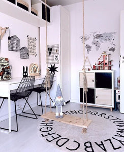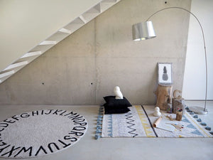 A betűk és a számok olyan motívumok, amelyek a gyerekek életének részei, s  minden gyerekszoba szép kiegészítői. A szőnyeg nem csak játékos, de ízléses is. A természetes dizájnnak köszönhetően lányos és fiús szobába is beleillik. Az ábécés motívum alkalmas kisebb gyerekeknek, s iskolásoknak egyaránt.