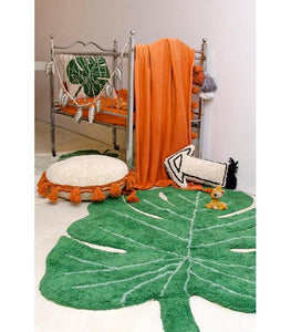 Ennek a mosógéppel kimosható, spanyol Lorena Canals márkájú szőnyegnek trendi könnyezőpálmalevél alakja van.