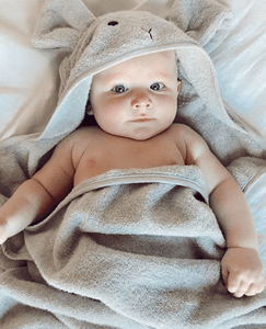 Egy kapucnis fürdőlepedő, amibe fürdés után bele lehet csomagolni a babát. Extra lágy frottír organikus pamutból.