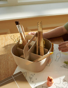 Tökéletes és praktikus kiegészítője gyermeke íróasztalának, ahol épp rajzol. Ideális zsírkrétákhoz, ollókhoz és egyéb író- és rajzeszközökhöz. Hat részből áll, hogy mindennek meglegyen a maga helye. Praktikus fogantyúval rendelkezik, hogy könnyen hordozható legyen.