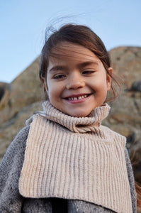 Nyakmelegítő 100% organikus pamutból, OEKOTEX® minősítéssel. Bordázott, garbóval. A gyermek nyaka és mellkasa melegen marad, a sál végei nem akadályozzák a mozgást. Könnyen fel- és levehető.