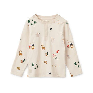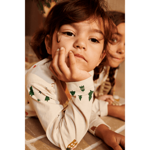 Liewood Wilhelm kétrészes hosszú ujjú pizsama karácsonyi motívumokkal. Kellemes anyagú, kényelmes szabású, egyszerű rögzítés kapcsokkal a tetején.