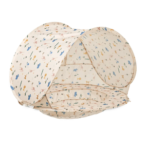 A Liewood Everett sátrat könnyű felállítani (csak tartsa egy kicsit távolabb, kissé mozgassa, és kész!) és összecsukható. Kompakt, könnyű és légáteresztő. A hálós ablak is hozzájárul a jó szellőzéshez.