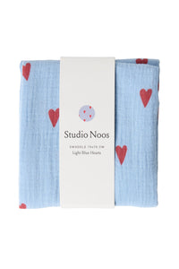 STUDIO NOOS Muszlin pelenka - Light Blue Hearts