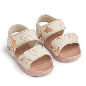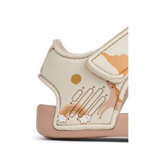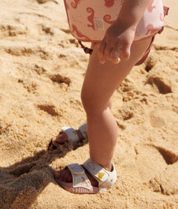 Kényelmes, könnyű tépőzáras szandál. A szandál könnyen mosható és gyorsan szárad. Alkalmas vízhez és alkalmi viselethez. Könnyen fel- és levehetőek. A sarok alatti talpon van egy aranyos részlet - egy panda képe, amely sétálás közben a homokban marad nyomon - apróság, amelyet gyermekei biztosan értékelni fognak :-).