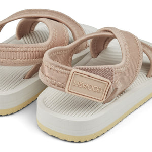 Liewood Liz könnyű szandál két keresztezett pánttal és tépőzáras rögzítéssel a hátulján. A szandál jól tart a lábon, rugalmas és gyorsan szárad.