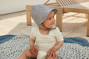 Áll alatt köthető nyári sapka. Védi a fejet és a füleket a napsugárzástól. Aranyos fülekkel és kis silttel. Légáteresztő és gyorsan száradó.