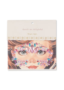 Csillogó "strasszkövekből" álló arcmaszk. Szórakoztató játék a kis hercegnőknek. A maszk három részből áll – a homlokra és kettő a szem alatti részre, egyszerűen felragasztható az arcra, és kislányából hirtelen hercegnő vagy tündér lesz.