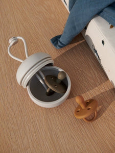 Szilikon tok cumikhoz, amelyeket épp nem használ. A tokba akár három cumi is belefér. A tokot egy táskához vagy babakocsi fogantyújához rögzítheti, így a cumi mindig kéznél lesz és tiszta is marad. A cumi tok mosogatógépben mosható.