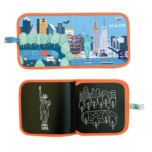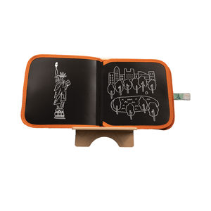 Ez a nyolc oldalas könyv végtelen teret enged gyermeke kreativitásának. A könyvbe krétával lehet rajzolni és utána könnyedén nedves ronggyal tisztára törölni. Remek játék otthon, útközben, egyszerűen minden pillanatban, amikor a gyerekek unatkoznának.