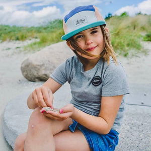 Öt paneles sapka 100% organikus pamutból a dán Lil'Boo márkától. A tépőzáras pántnak köszönhetően pontosan beállítható a méret. A sapka belsejében található izzadságfelszívó szalag szuperpuha Q-Miltch anyagból készült, amely akár kétszer annyi izzadságot is felszív, és természetes antibakteriális tulajdonságokkal rendelkezik.
