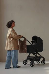 Pelenkázótáska stílusos és praktikus szülőknek. Tágas, belül osztott, így mindennek megvan a maga helye, cipzárral és vízálló béléssel. A táskát vagy a babakocsi fogantyújára dobhatja a hosszú fogantyúknak köszönhetően, vagy oldalsó fogantyúk találhatók, amelyek segítségével hevederekkel rögzítheti a táskát a babakocsihoz.