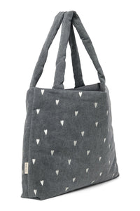 Elég hosszú pántokkal ahhoz, hogy a babakocsi fogantyújára lehessen akasztani, és stílusosan a vállon hordani, még akkor is, ha nincs gyereked. Tágas, puha farmertáska.
