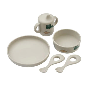 LIEWOOD Ryle Öt részes szilikon étkészlet - Dinosaurs / Mist