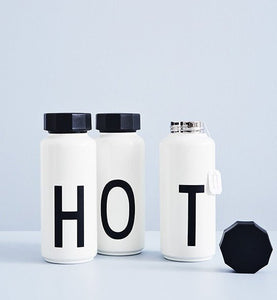 Praktikus hőpalack északi stílusban. Thomas Jacobsen által tervezett fekete betűk, amelyek a hőpalack letisztult személyre szabását biztosítja.