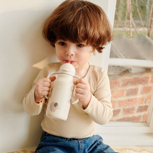 A népszerű, kisgyermekeknek szánt 250 ml-es hőpalack új, felnyitható szilikon szívószállal és fogantyúkkal rendelkezik a jó fogás érdekében. A Kimmie hőpalack szigetelő funkcióval rendelkezik, így az italok akár 12 órán keresztül melegen, hidegen pedig akár 24 órán keresztül is maradhatnak. Felhajtható puha szilikon szívószálas fedéllel, fülekkel. A fedél jól zár a szilikongyűrűnek köszönhetően.