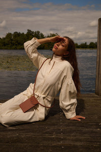 Stílusos és praktikus mobiltelefon táska szíjjal a Monk&Anna márkától. A kártyazsebbel a hátulján.