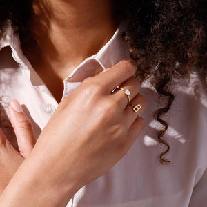 Gyönyörű ékszer vonzó gyöngy szív díszítéssel, amely a tisztaságot, a bölcsességet, a nőiességet és a békét szimbolizálja. Nőies, önmagában is lenyűgöző, vagy a Design Letters betűs gyűrűvel kombinálva. A gyűrű mérete rugalmas 48 - 58 között.